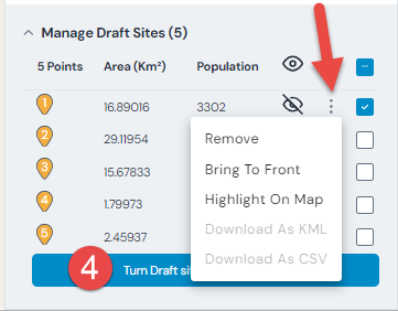 Export the draft site as a GeoJSON or CSV