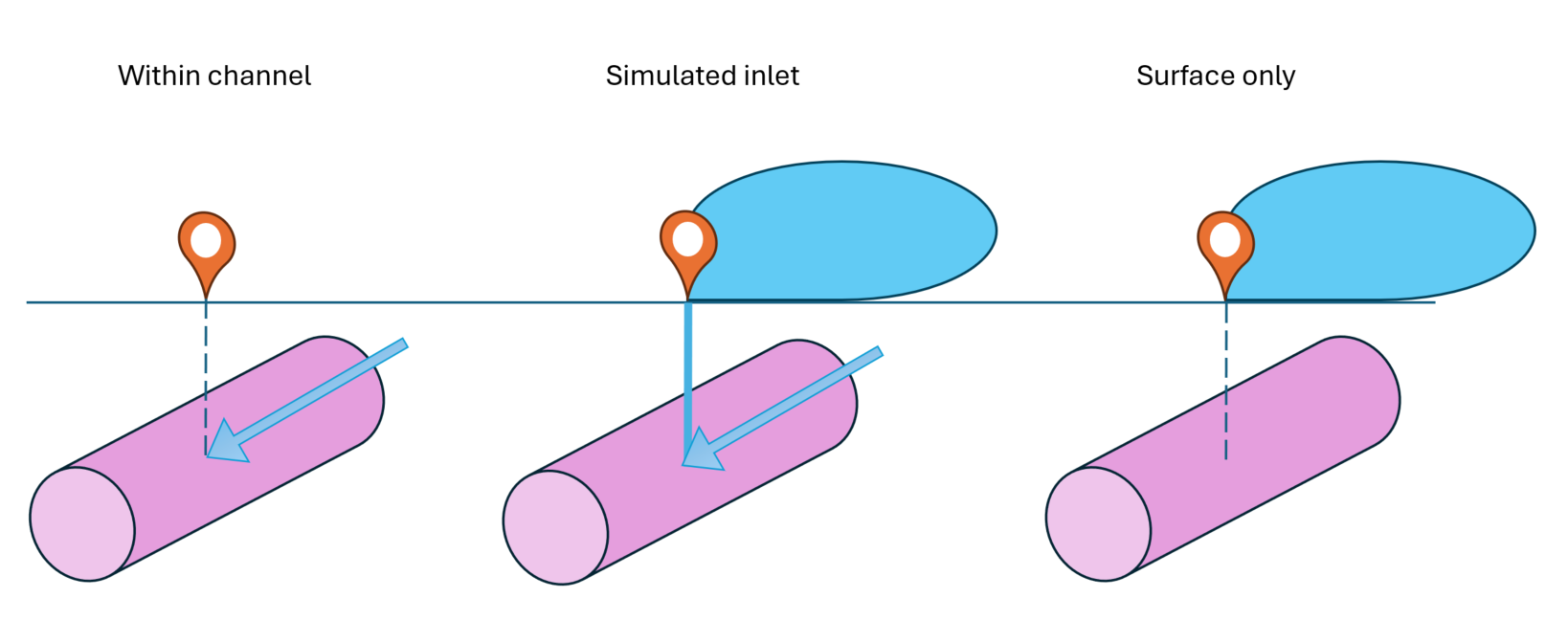 The default value assumes the site is ‘within a channel’, so the watershed is delineated from the upstream sewage network segments (open and closed)