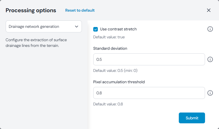 Map processing relies on a set of options. Here we describe what and how these options can be tweaked. The underlying toolbox used to process the maps are the Whitebox tools.